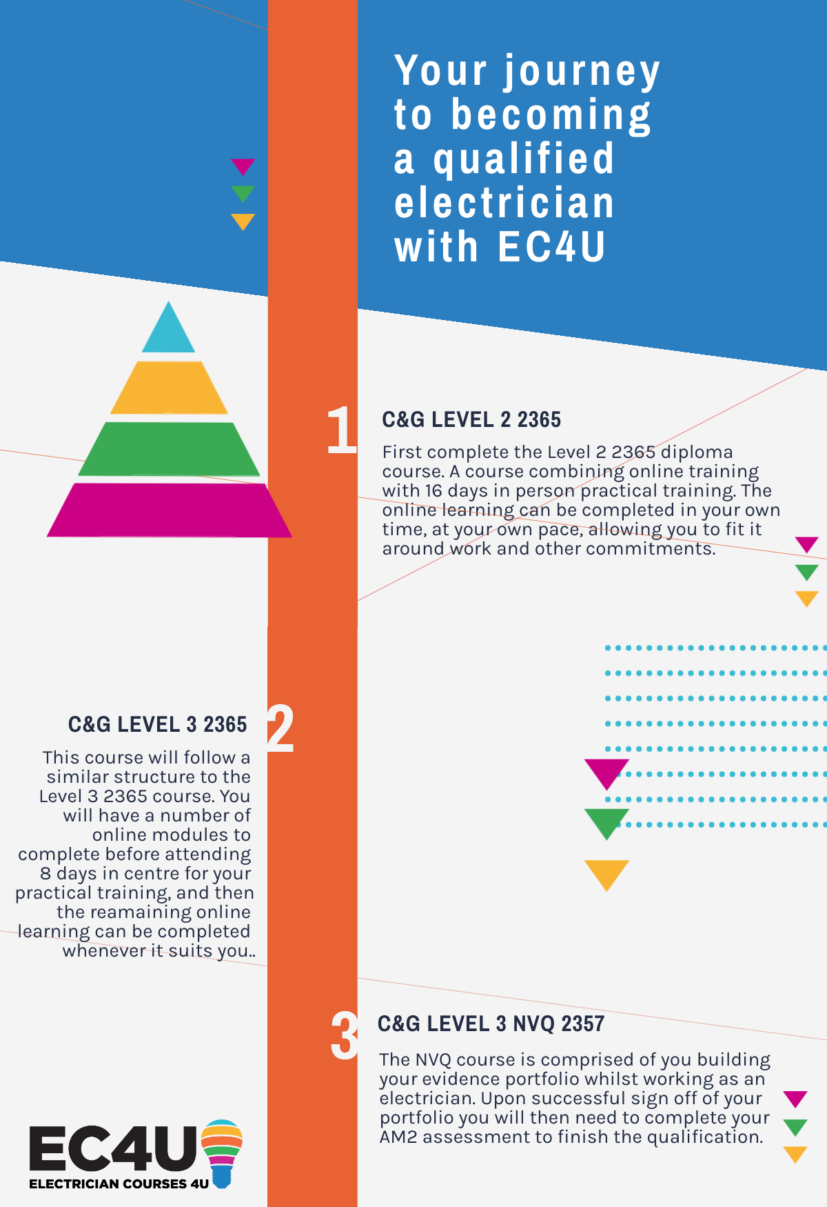 We have designed our route to becoming a qualified electrician as simple as possible, trying to reduce the amount of time you need to attend in person training and allowing you to fit the courses around your other commitments.